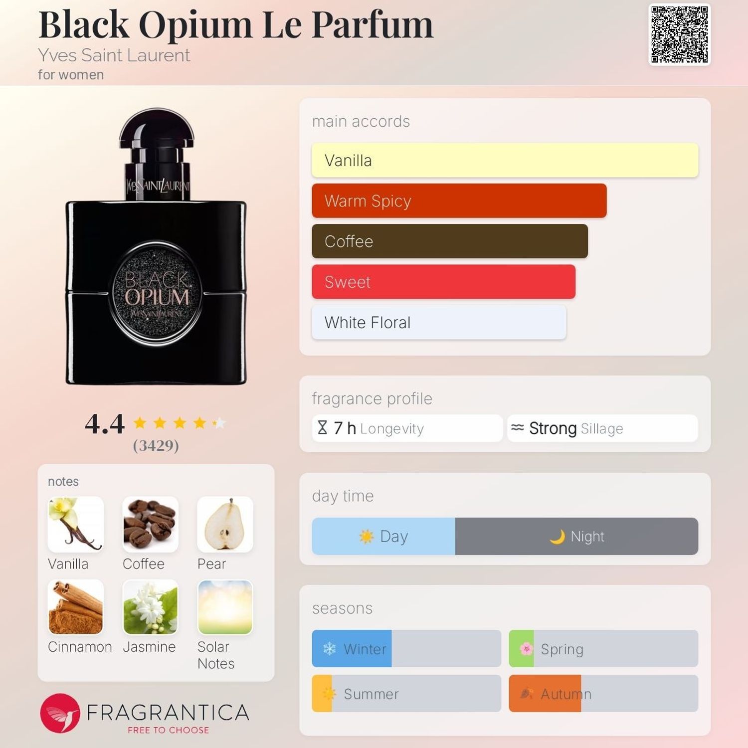 - Гол аккорд: Ваниль, дулаан халуун ногоо, кофе, амтлаг, цагаан цэцэг
